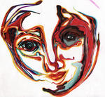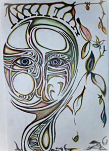 2008Geinspireerd door een zwart wit schets van Dali. Gemaakt met viltstfit. Daardoor zou t ineens ook een soort masker van draden kunnen zijn/worden.