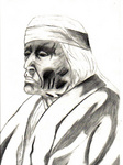 1997Tekening van een van de legendarische Apache indianen. Portret tekening van Mangas Coloraclas. Potlood op papier. Gemaakt in 1997.