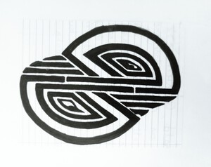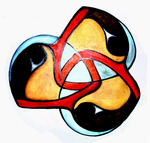 2011Keltische symbool. Drie eendenkoppen versmolten in een geometrisch geheel.