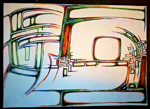 2001Een tekenopdracht n.a.v. de film Koyaniquatsi die ik had gekeken op de Kunstacademie.