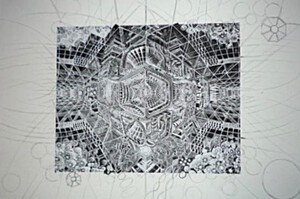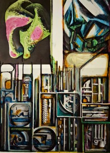 1999Tekening gemaakt met verf. Object in het universum. 1999